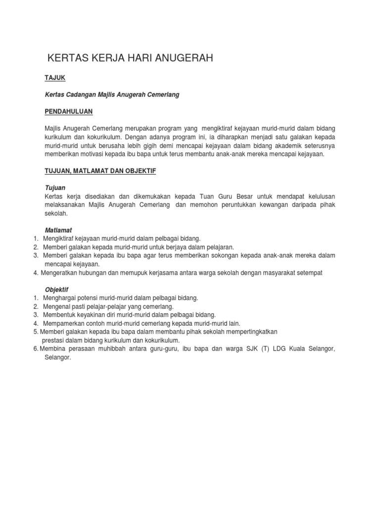Contoh Kertas Kerja Hari Anugerah Cemerlang
