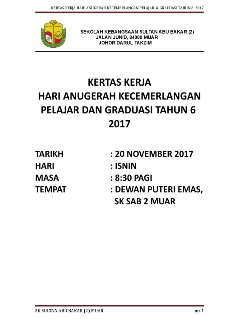 . KERTAS KERJA HARI ANUGERAH KECEMERLANGAN PENDIDIKAN 2015 PENGENALAN Hari Anugerah Kecemerlangan Pendidikan merupakan acara tahunan yang dianjurkan oleh SK. Hari Anugerah Kecemerlangan merupakan hari yang penting di setiap sekolah ia merupakan hari di mana para pelajar diraikan dan diberikan penghargaan sebagai. Contoh Kertas Kerja Hari Guru Peringkat Sekolah Contoh sijil anugerah cemerlang guru.